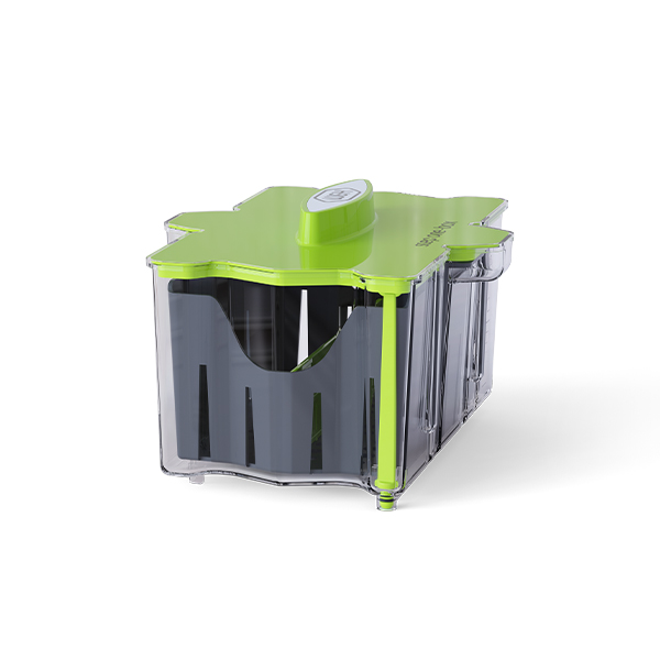 - Système de vidange unique et sécurisé, grâce à un bouchon clipsé au fond de la boîte limitant les manipulations au moment de la vider. L’écoulement est progressif, empêche les projections dans l’évier et évite d’inonder le poste de travail.