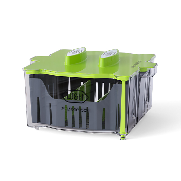 Un égouttoir indépendant est inclus dans la Step One-Box. Un support intégré permet de poser l'égouttoir sur la boîte, afin d'égoutter les instruments à l'intérieur de la box. Cette fonction innovante limite la contamination de la paillasse en salle de stérilisation.Les avantages en un clin d'œil